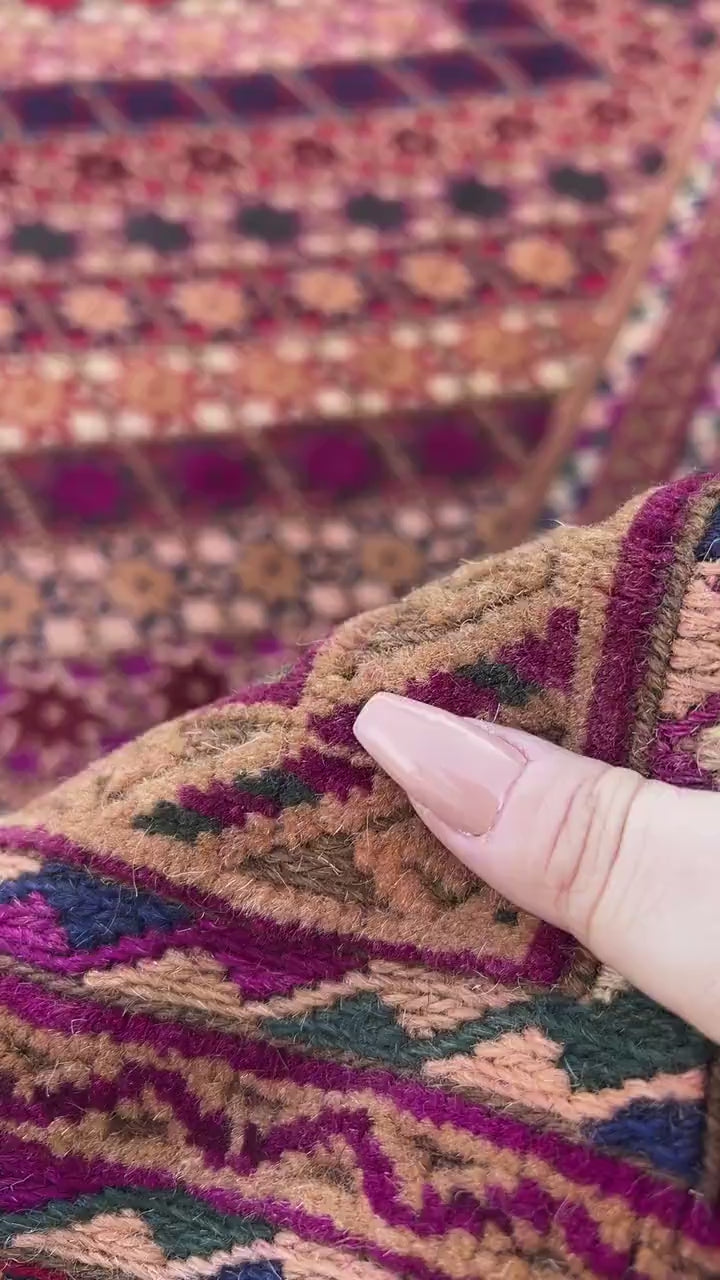 6x9 (180x275) Handmade Vintage Baluch Afghan Rug | Magenta Crimson Red Moss Green Cherry Red Caramel Midnight Blue Pine Green | Hand Knotted
